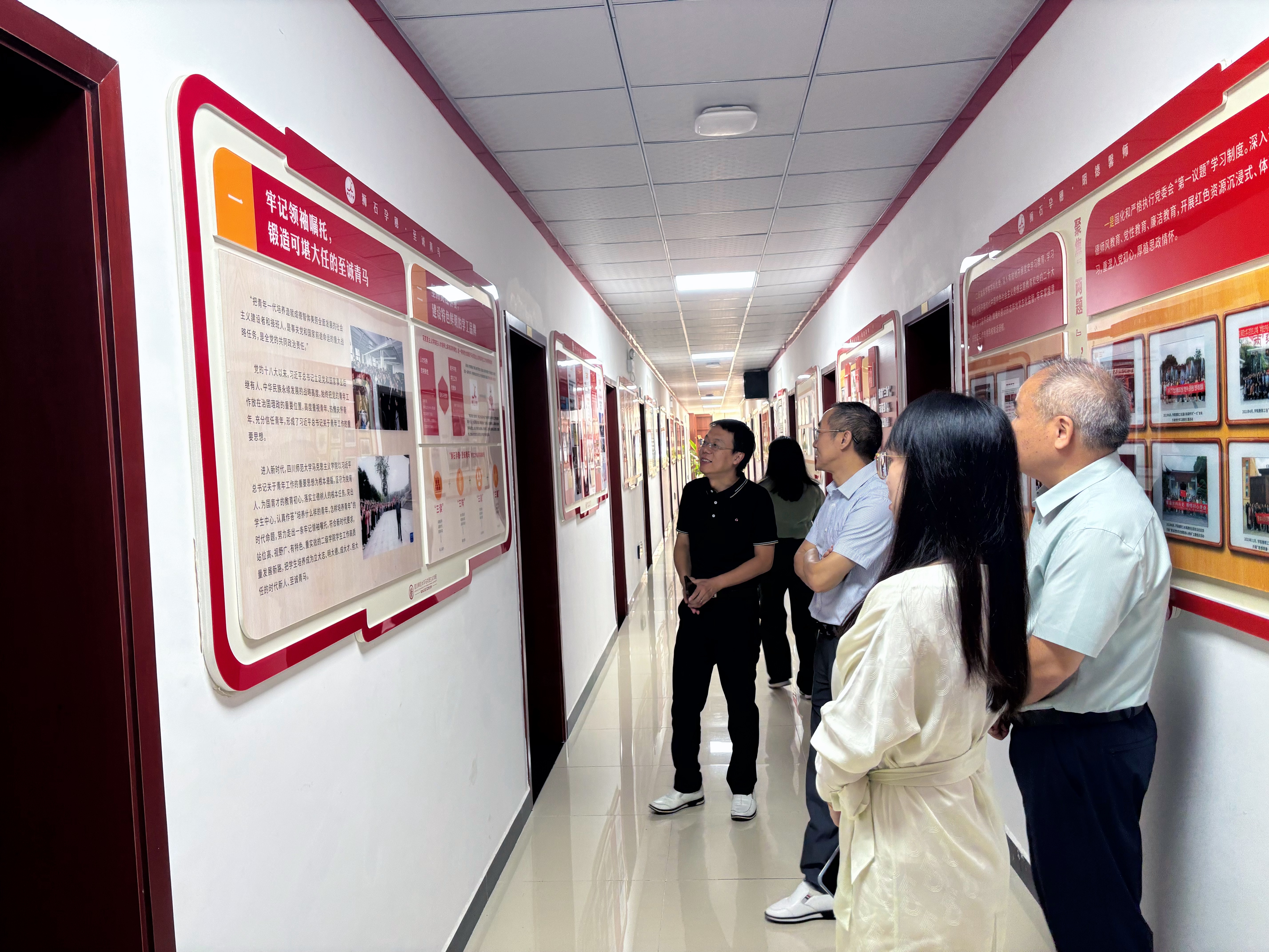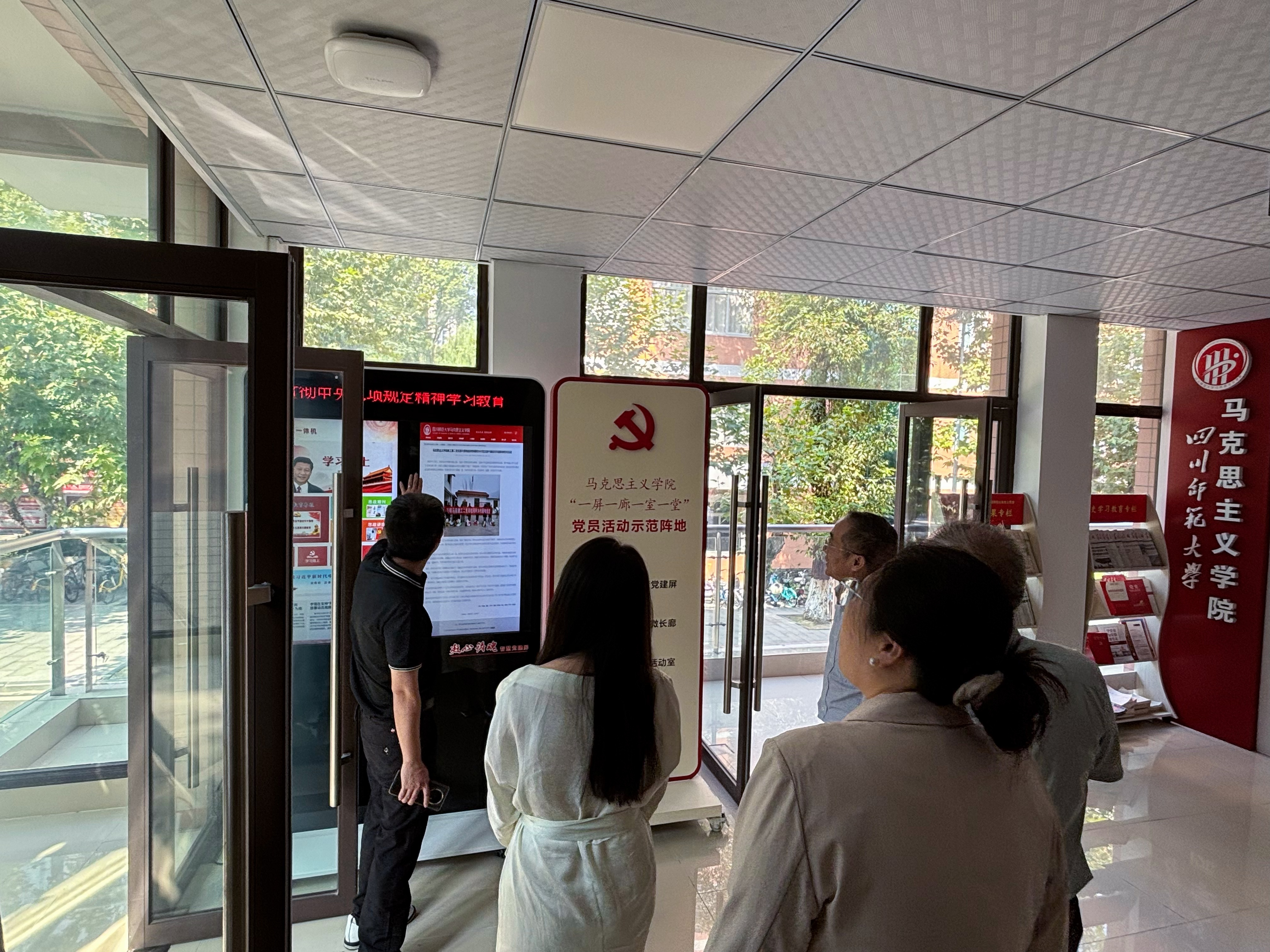 会后,在四川师范学院马克思主义学院副院长付恒的陪同下,段院长一行对四川师范学院马克思主义学院进行了参观,学习了四川师范学院马克思主义学院院的“三读”、“三味”、“三能”、“三星”等品牌特色。