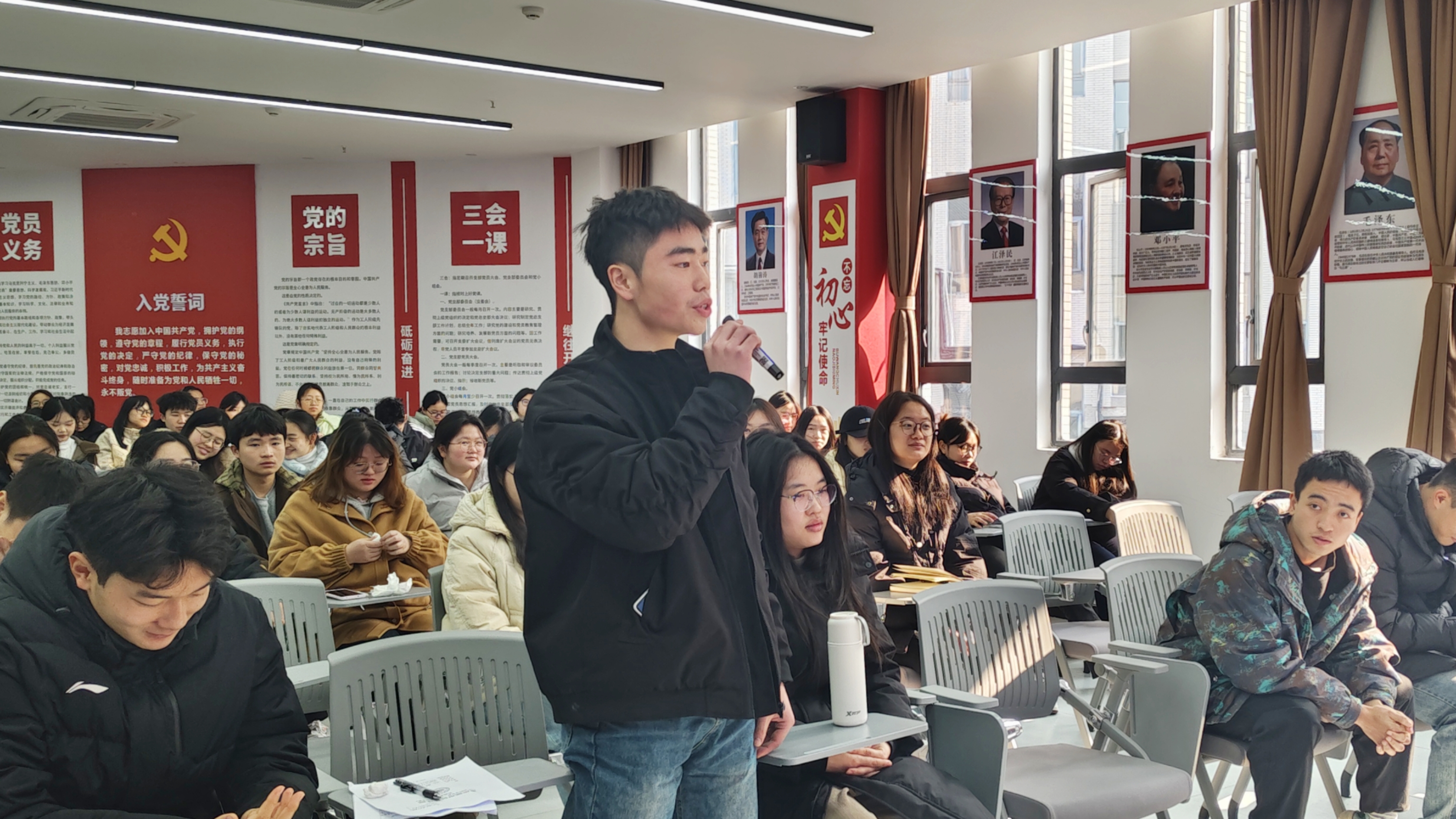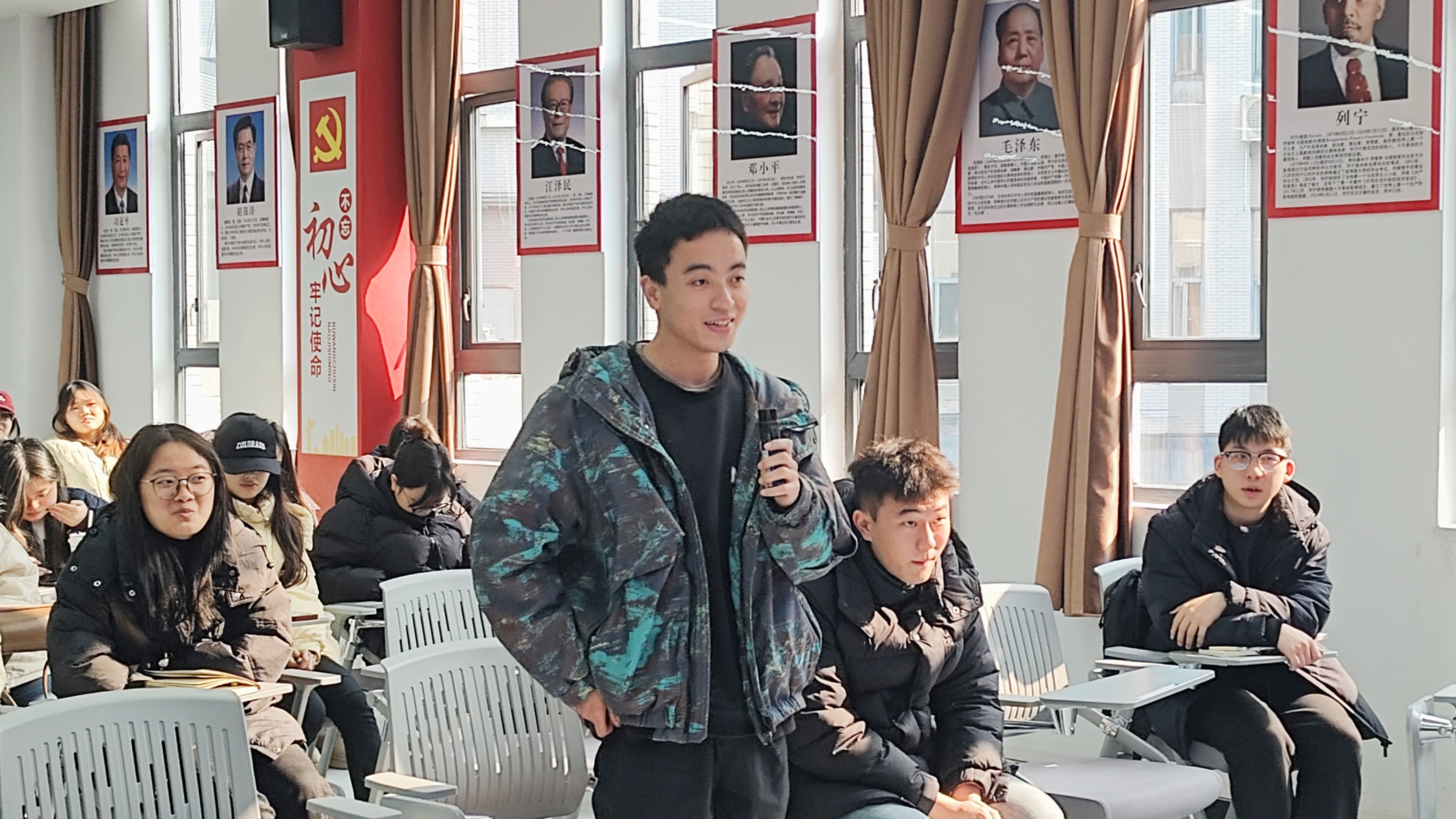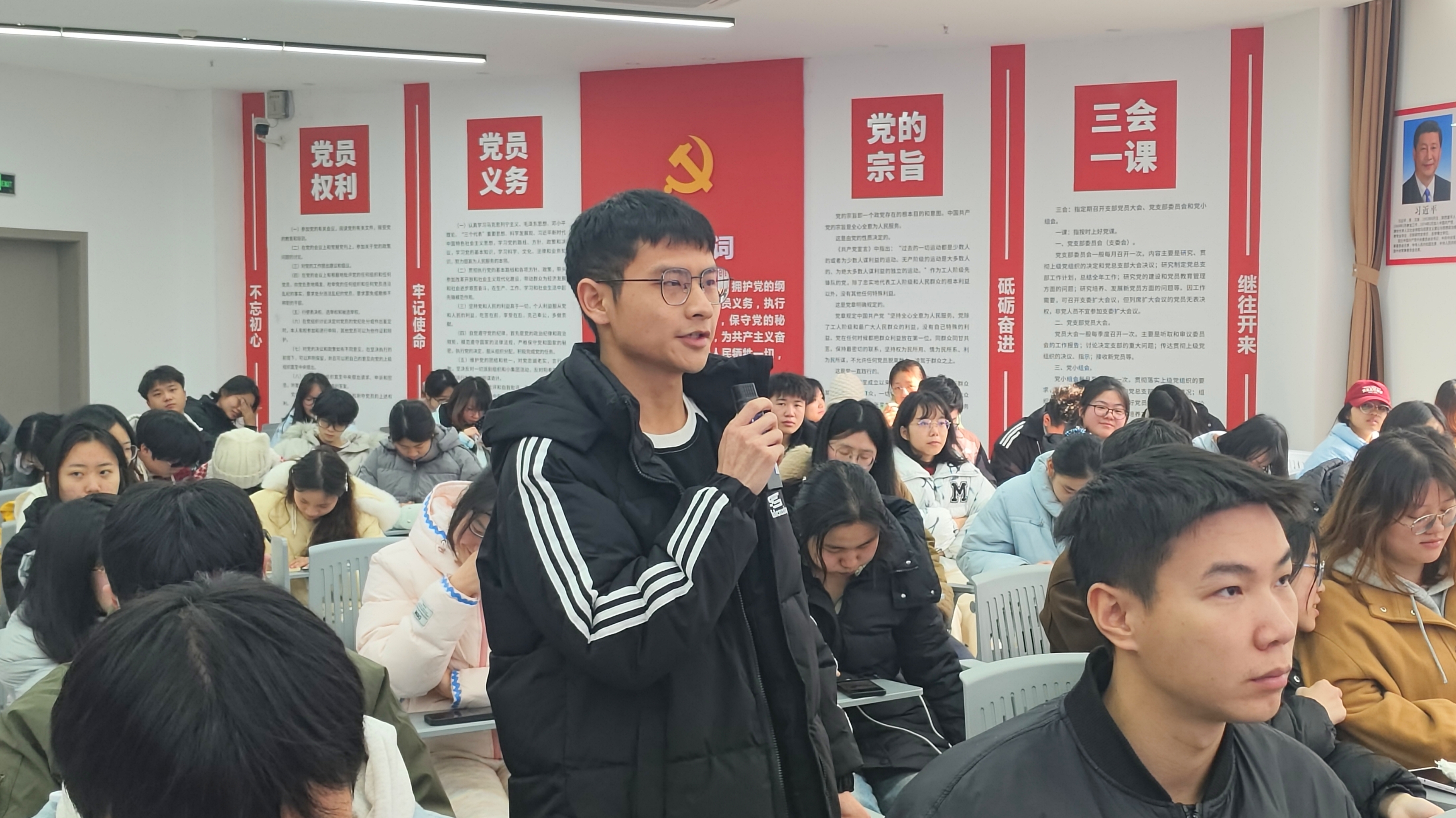 在师生互动答疑环节。程熙、刘晶鑫、王文举三位同学依次发言,分别就基层工作能力培养路径、人生抉择中的心态调适与读书心得积累、论文写作技巧及考研复试准备等关键问题向段吉福院长请教,段院长逐一予以耐心细致的回答。他强调,同学们应积极把握基层实践机会,在实干中锤炼综合能力;面对人生抉择要保持从容心态,将读书学习作为终身习惯。同时,他表示,学院将持续通过举办学术讲座、考研模拟面试、论文写作指导等活动,为同学们的专业成长与未来发展提供全方位支持与指导。