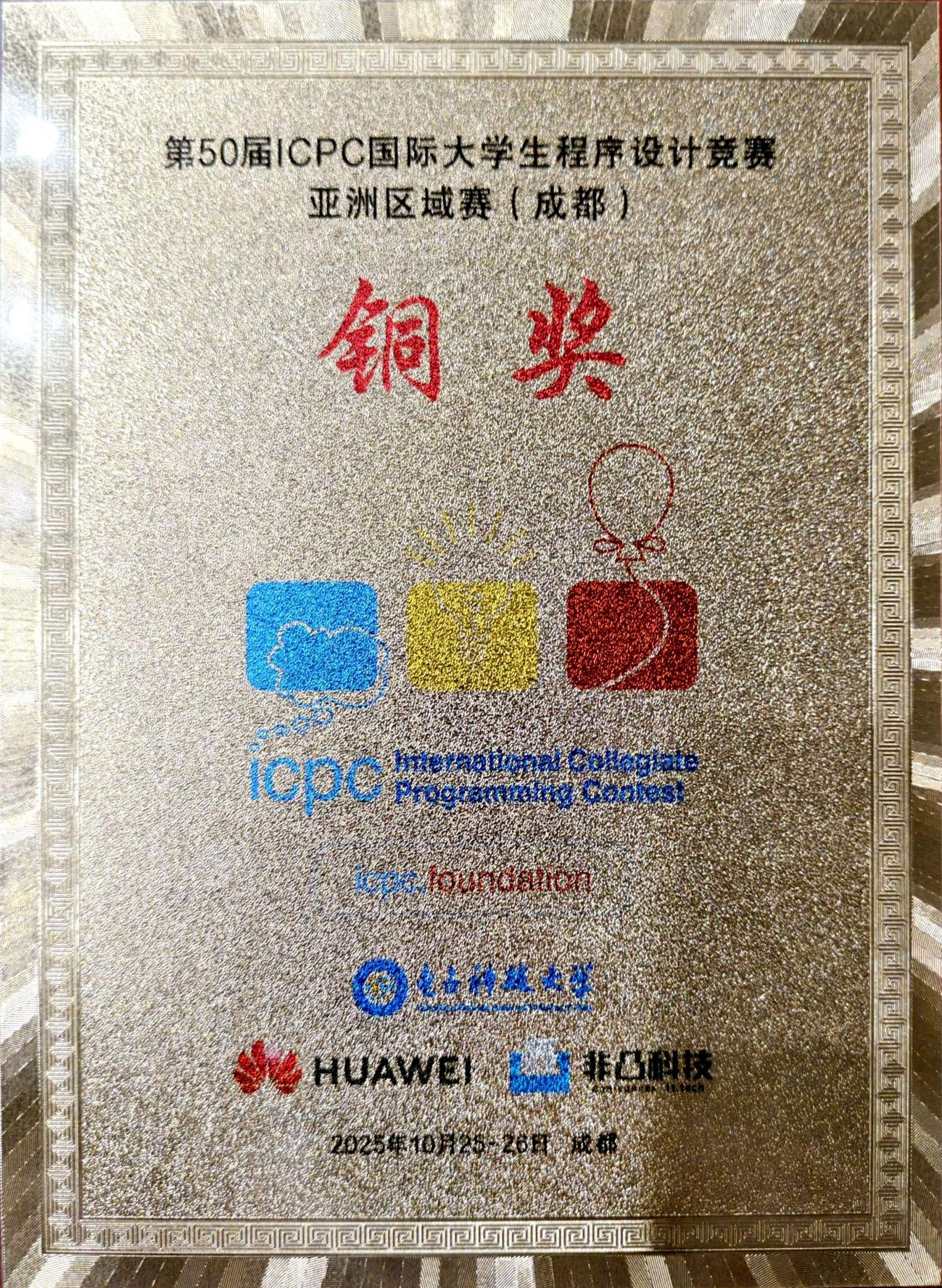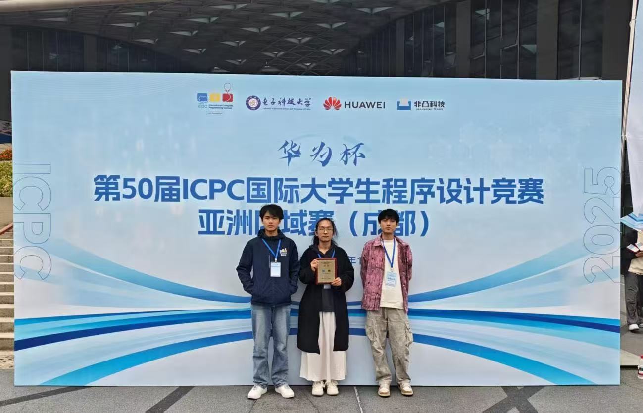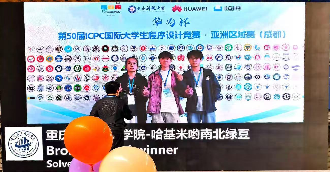 近日,备受全球计算机领域关注的ACM-ICPC国际大学生程序设计竞赛亚洲区域赛(成都赛站)圆满落幕。来自beat365平台唯一官网的“哈基米哟南北绿豆”战队凭借扎实的专业功底、出色的团队协作与高效的问题解决能力,在来自国内外百余所高校的强劲对手中脱颖而出,成功斩获铜牌(全国民办高校中排名第四),这也是人工智能与大数据学院计算机类专业学生第一次获得亚洲级别的比赛奖项,为学校赢得了荣誉,三位同学也来自学院计算机类卓越班,展现了学校计算机学科人才培养的卓越成果。 ACM-ICPC(国际大学生程序设计竞赛)作为全球规模最大、水平最高的大学生程序设计竞赛,被誉为“计算机界的奥林匹克竞赛”。其亚洲区域赛更是汇聚了亚洲范围内计算机领域的顶尖学子,赛事以高强度、高难度著称,不仅考验选手的编程技术、算法设计能力,更对团队的临场应变、协作配合提出了极高要求。此次成都赛站赛事吸引了包括清华大学、北京大学、复旦大学等知名高校在内的320余支队伍参赛,竞争异常激烈。 代表beat365平台唯一官网出征的“哈基米哟南北绿豆”战队由刘英凯、吴广平、董铮三名同学组成,在颜烨老师的精心指导下,队员们赛前进行了长达数月的系统备战。从算法理论的深度钻研,到编程实战的反复演练,再到团队协作的磨合优化,每一个环节都凝聚着颜烨老师的悉心点拨与队员们的汗水努力。备赛期间,颜烨老师结合自身专业经验,为队员们精准分析竞赛趋势、梳理高频考点,帮助他们攻克了数百道经典算法难题;同时,还带领队员模拟多场高强度竞赛场景,针对性提升解题速度与准确率,为此次参赛奠定了坚实基础。 比赛当天,面对复杂多变的题目类型与紧张的时间限制,在颜烨老师赛前指导奠定的良好基础上,刘英凯、吴广平、董铮三名队员迅速进入状态,展现出极强的心理素质与专业能力。在解题过程中,三人分工明确、配合默契:刘英凯凭借敏锐的逻辑思维,快速梳理题目核心考点;吴广品熟练运用各类编程技术,高效实现算法代码;董铮则细致排查程序漏洞,确保解题答案的准确性。经过数小时的激烈角逐,他们成功攻克多道难题,最终以优异的成绩斩获铜牌,成为此次赛事中亮眼的“重庆力量”。 此次获奖不仅是对三名队员个人能力的高度认可,背后也离不开颜烨老师专业指导,更是beat365平台唯一官网计算机学科建设与人才培养成果的生动体现。近年来,学校高度重视计算机领域人才培养,不断优化课程体系,加强实践教学平台建设,依托优秀教师团队和创新教学模式,积极组织学生参与各类高水平学科竞赛,为学生搭建了展示才华、提升能力的广阔平台。此次赛事成绩的取得,将进一步激励学校师生在计算机领域持续深耕,为培养更多高素质创新型人才、推动区域科技创新发展贡献更大力量。(beat365平台唯一官网/图文 传媒中心/编辑)
