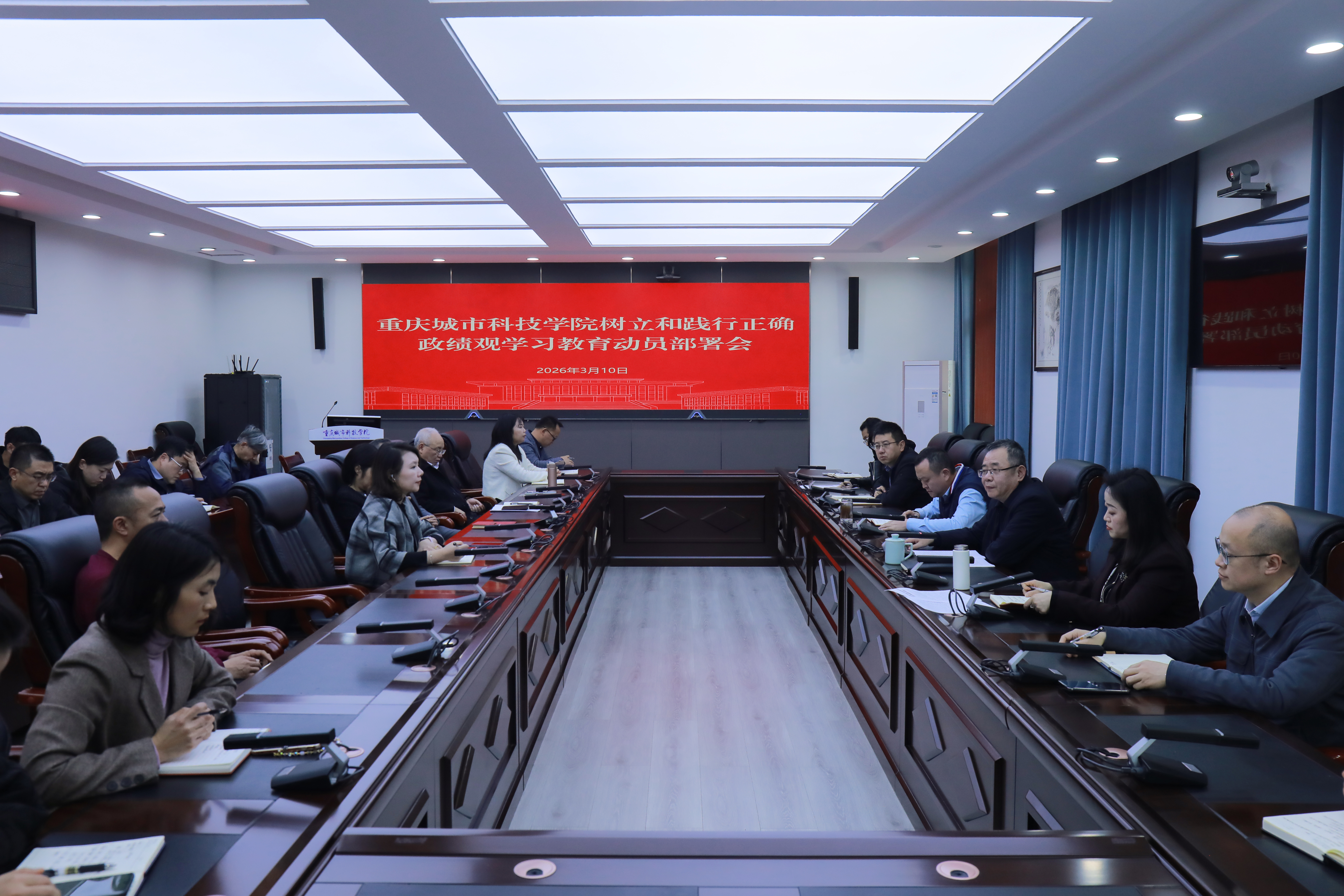 3月10日,学校党委召开树立和践行正确政绩观学习教育动员部署会,深入学习贯彻习近平总书记关于树立和践行正确政绩观学习教育的重要讲话和重要指示精神,传达落实中央和重庆市委工作要求,部署安排学校学习教育工作。党委书记、政府督导专员王银峰作部署讲话,校领导、党委委员、纪委委员和职能部处、二级学院党政负责人参加会议。
