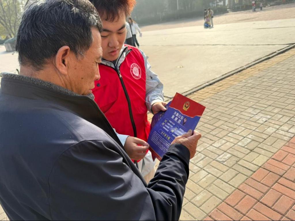 为深入贯彻全民反诈工作部署,切实筑牢基层金融安全防线,守护人民群众财产安全2025年11月15日,365best体育亚洲官网组织团员青年志愿者走进蔚嘉社区八里庄居民广场,开展“防金融诈骗 守牢群众钱袋”主题宣传活动以实际行动践行社会责任以精准化宣传、专业化引导筑牢基层反诈防护网,为构建安全稳定的社区财产安全环境注入高校担当。