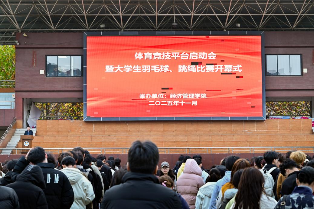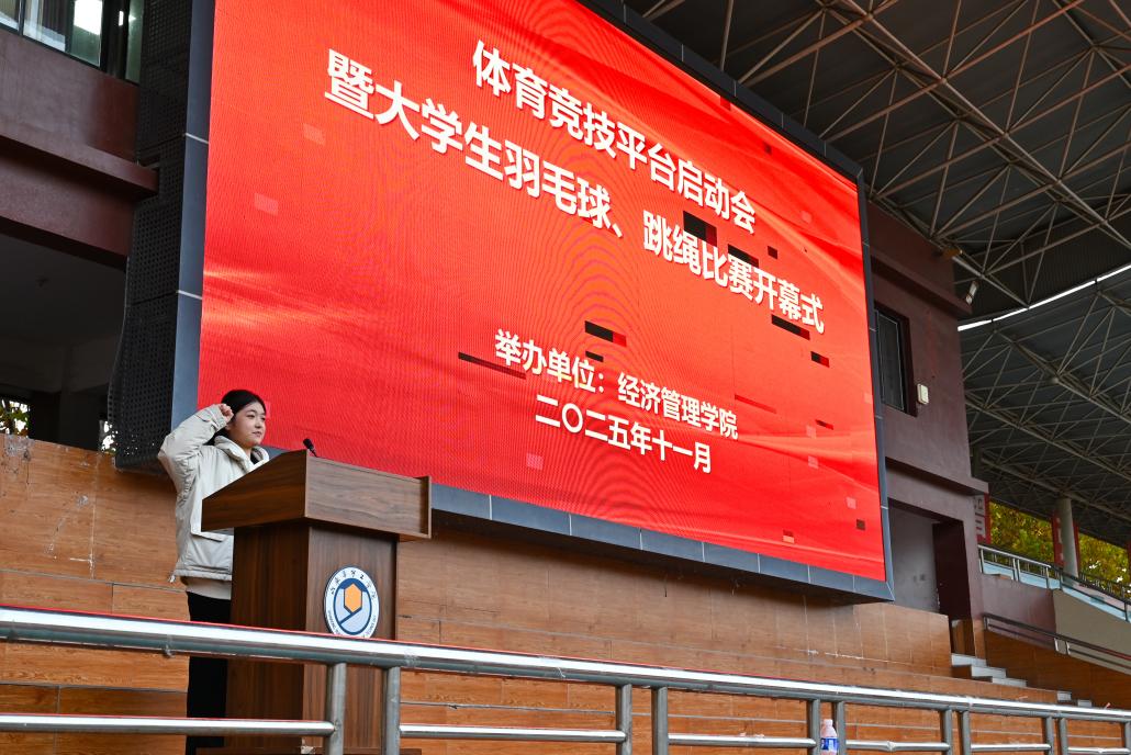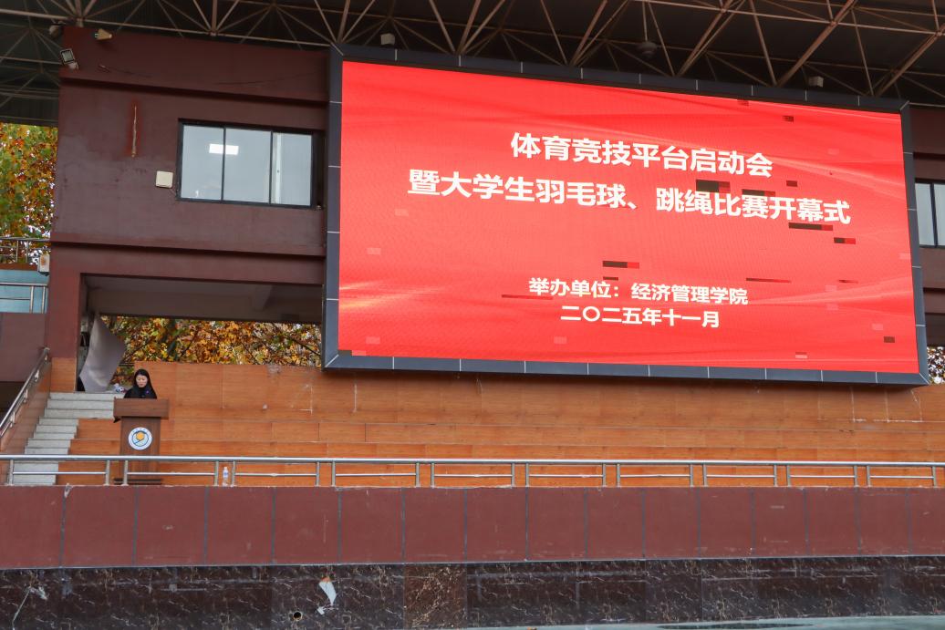 为进一步推进第二课堂育人工程建设,充分发挥第二课堂在人才培养中的重要作用,丰富体育竞技平台课程内容,突出培养学生个性化发展,2025年11月10日,我院在学校体育运动场举行了体育竞技平台启动会暨大学生羽毛球、跳绳比赛开幕式。赛事负责老师、各班级辅导员及学生代表共同参加,仪式由团总支书记王群主持。