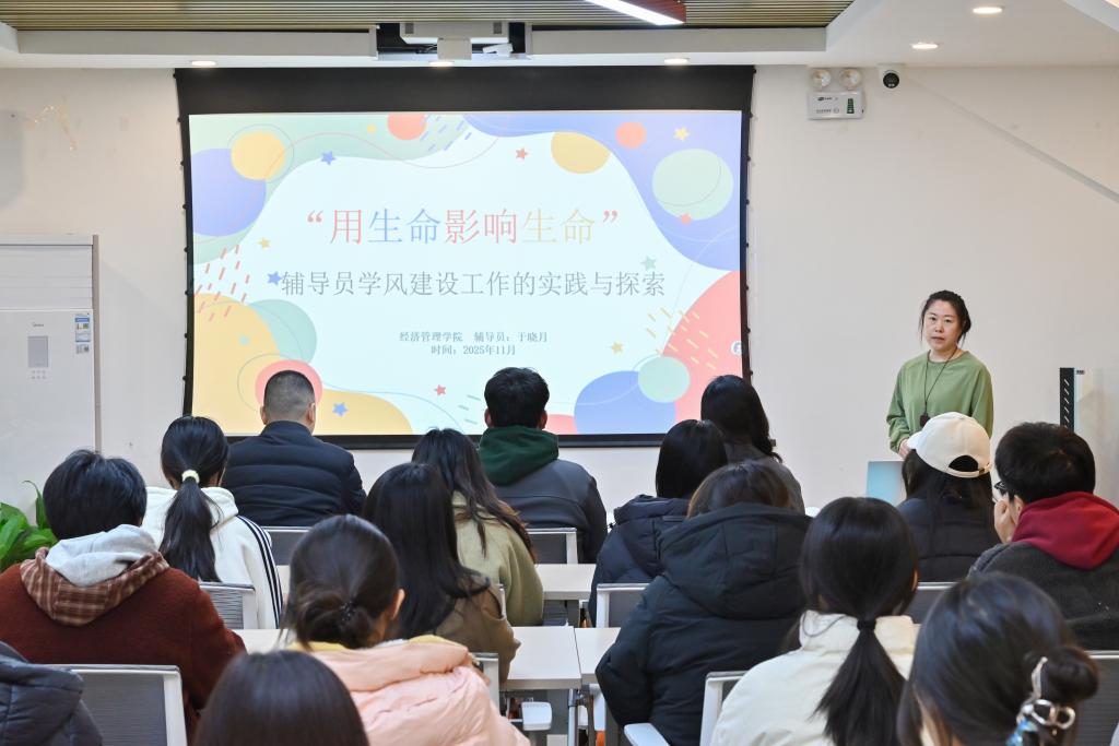 分享会设置两大核心环节,层层递进传递榜样力量。第一环节为辅导员学风建设经验分享,365best优秀辅导员于晓月老师以“根植优良学习习惯,涵养严谨治学态度”为初心,在学风建设中扛起“引导者、解读者、守护者”三重使命,着力推动学风建设从“外在要求”向“内在觉醒”深度转型。她秉持“用生命影响生命”的育人理念,双轮驱动深耕学风建设“根基工程”:一方面以精准化引导为抓手,针对不同学情学生量身定制成长方案,精准破解学业困惑;另一方面以宿舍共建为纽带,搭建集体互助平台,凝聚奋进合力,最终构建起“育人有温度、学习有氛围、成长有方向”的学风建设新格局,成效广受师生认可。